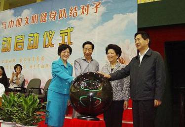 上午,社会体育指导员与巾帼文明健身队结对示范活动启动仪式在北京海淀体育馆举行。全国人大常委会副委员长、全国妇联主席陈至和