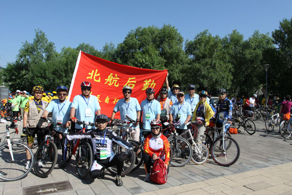 16日车协一行13人冒着高温参加了八达岭长城杯第二届北京国际自行车骑游大会。今年的骑游大会除了保留了去年的活动外,又新增设了山地自行车越野赛和自行车趣味活动。双人自行车、独轮车、四人骑乘的带棚自行车等。使我们参加骑游的队员又一次近距离感受了“休闲延庆,骑乐无穷,时尚健身,绿色出行”的骑行氛围。
