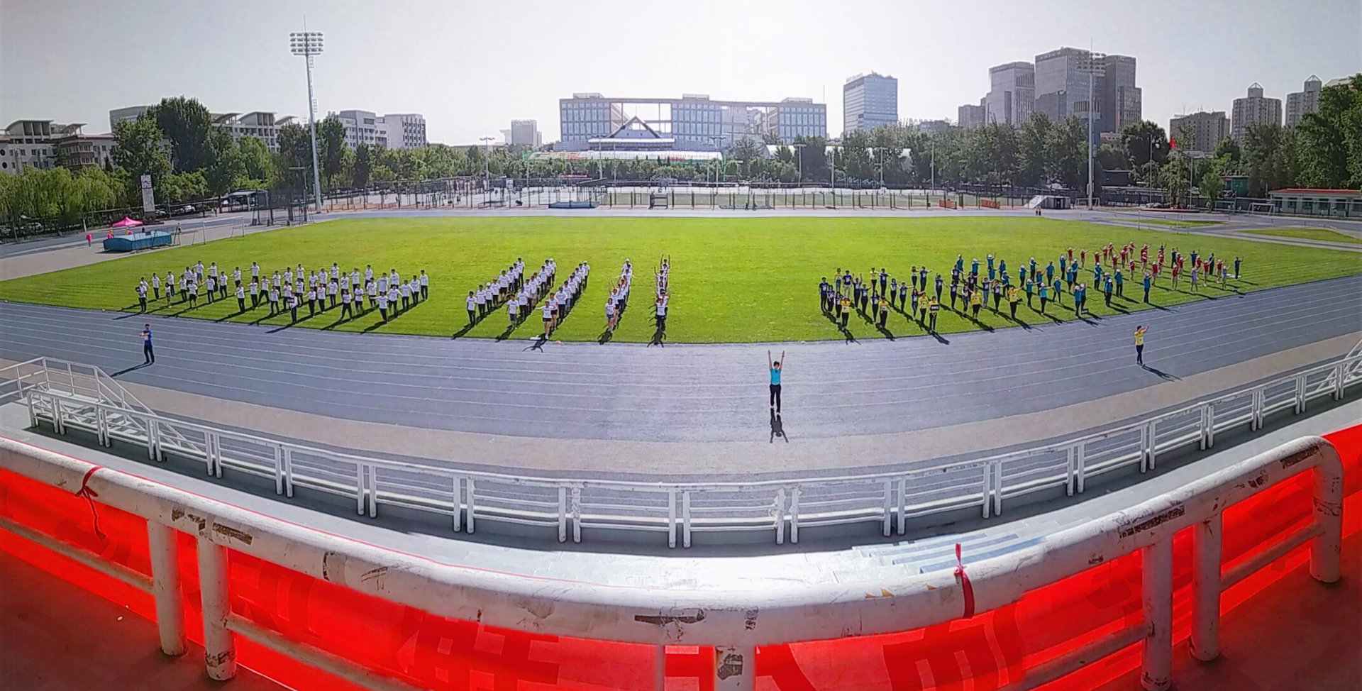 碧空如洗晴空万里,伴随着激昂向上的入场式进行曲,国旗护卫队、裁判员代表队、大二代表队、大三代表队、大四代表队、硕博代表队、物理学院教师代表队以及校医院代表队8个方阵依次入场,他们迈着整齐地步伐,精神抖擞。在庄严的五星红旗升起之后,物理学院党委书记王文文老师与校医院党委书记徐亚军老师致辞,衷心祝愿全体师生们能有健康体魄,“每天锻炼一小时,健康工作五十年,幸福生活一辈子”。在裁判员代表及运动员代表宣誓后,8个方阵伴随着熟悉的音乐进行了第八套广播体操汇报演出,动作整齐划一,青春阳光的气息扑面而来,展现了物理人和校医院的精神风貌。最后,吕广宏院长宣布本届运动会正式开幕。