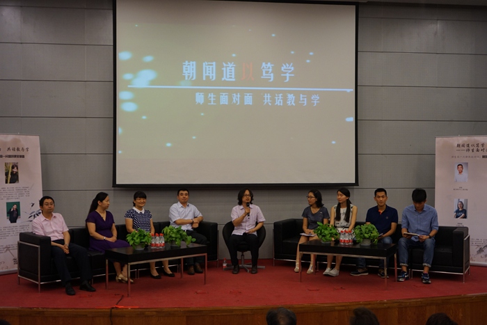 围绕“教与学”这个话题,师生间能够产生怎样的思维碰撞?活动当天,物理科学与核能工程学院教授黄安平、航空科学与工程学院副教授鲍蕊、材料学院副教授于美、思想政治理论学院教师高宁与刘瑶、曹清晨、张岩雯、蔡颖婕四位同学在主持人明辉副教授的带动下,围绕“我心目中的好老师、好学生”、“教学与读书”、“知识和文化”、“有教无类”、“因材施教”等几个问题,用机智、幽默、博学展开了一场精彩的理性对话,现场气氛融洽欢快。